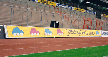 Nirgends treffen so viele unterschiedliche Menschen aller Altersstufen aufeinander wie bei Sportereignissen. Wo sonst kann also effektiver geworben als an Sportstätten? Ganz gleich, ob Sie dort Werbeflächen zu vermieten haben oder selbst werben möchten: Die Prismenwender PW100 Sport sind die Alternative zur herkömmlichen Bandenwerbung. |
